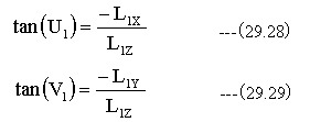 ここで、X,Y,Z座標系での出射光線角度U1.V1とは下記の関係式が成立します。